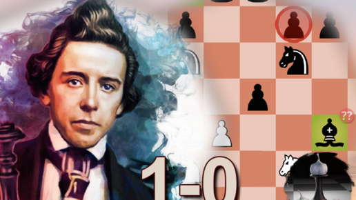 Суровая атака Морфи белыми в гамбите Эванса - белыми великий американец Пол изящно громит Томаса Хэмптона в Лондоне, 1858, 1-0