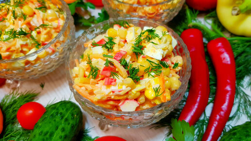 Салат на скорую руку (за несколько минут) – вкусный салат с крабовыми палочками и морковью по-корейски
