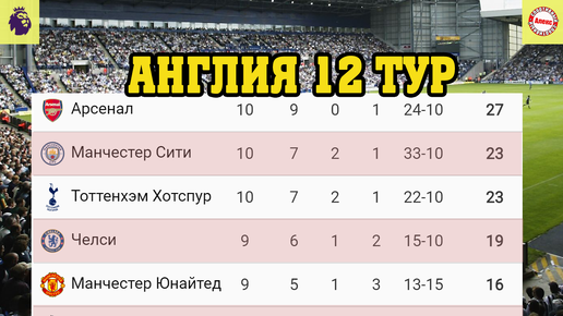 Чемпионат Англии по футболу. 12 тур. Результаты, расписание, таблица.