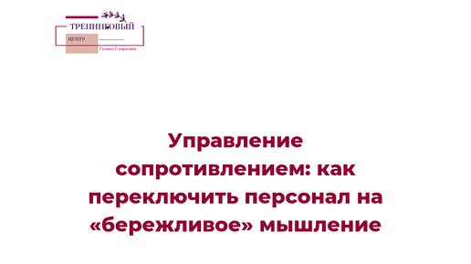 Управление сопротивлением: как переключить персонал на “бережливое” мышление”.