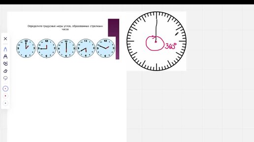 определяем угол между стрелками часов