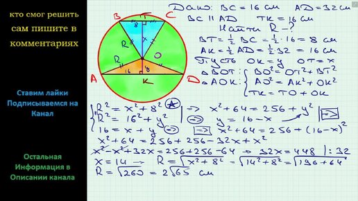 Геометрия В окружности по разные стороны от ее центра проведены две параллельные хорды длиной 16 см и 32 см Расстояние между хордами равно