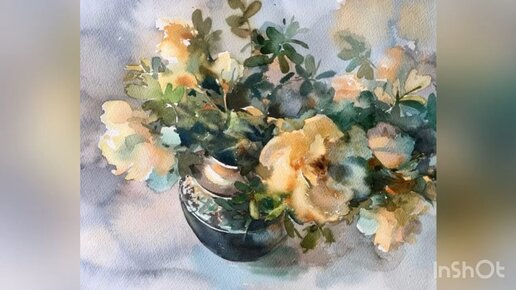 Белый шиповник. Автор Марина Ласаева. #акварель #акварельнаятехника #акварельнаяживопись #живопись #watercolor