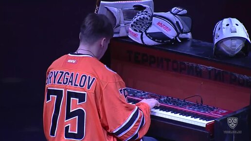 Даниил Брызгалов сыграл на фортепьяно композицию из мюзикла «Кошки» перед матчем КХЛ