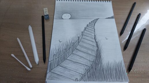 Мост. Старая лестница. Пейзаж. Падающая лестница. Рисунок #12