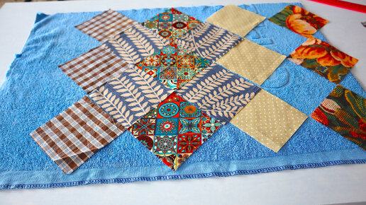 Эту идею подметила на отдыхе у хозяйки гостевого дома. Пришила кусочки ткани к полотенцу, которое вышло из строя