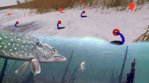 Голодная щука заметила окуня и быстро рванула в его сторону (подводная съемка)