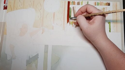 Рисую первый разворот сказки. Первая заливка цветом.