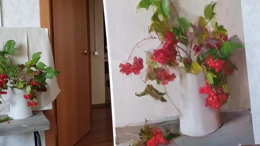 Красные ягоды. Живопись маслом. Видеоурок
