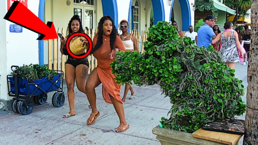 Человек куст, пранк во Флориде! Она кинула сумочку от страха!