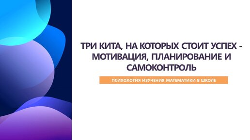 ТРИ КИТА, НА КОТОРЫХ СТОИТ УСПЕХ - МОТИВАЦИЯ, ПЛАНИРОВАНИЕ И САМОКОНТРОЛЬ. Психология изучения математики в школе