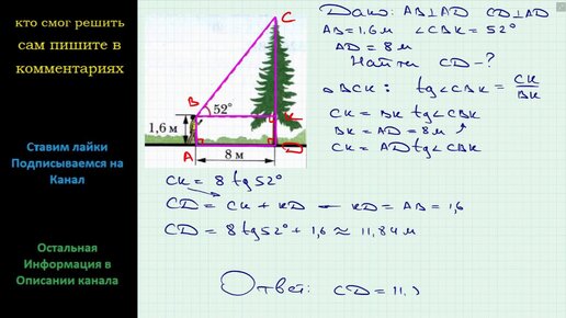 Геометрия Используя данные рисунка, найдите высоту дерева.