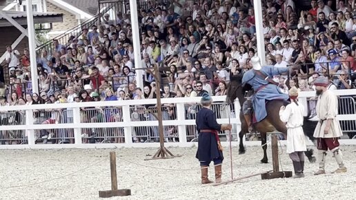 фрагмент соревнований по рейтарскому многоборью: умению владеть холодным и огнестрельным оружием времен царской кавалерии верхом на лошади