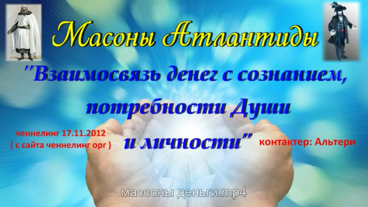 Ченнелинг Масоны Атлантиды "Взаимосвязь денег с сознанием, потребности Души и личности" 17.11.2012