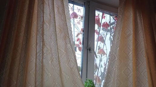 Проснулась, лежу, смотрю на красные листики за окном...