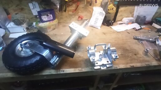 Опорное колесо TR09 c поворотным хомутом для его крепления на прицеп ЭКСПЕДИЦИЯ УНИВЕРСАЛ 111320