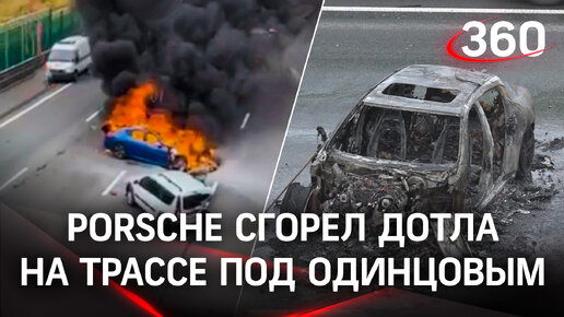 Porsche разбился и сгорел дотла на трассе под Одинцовым