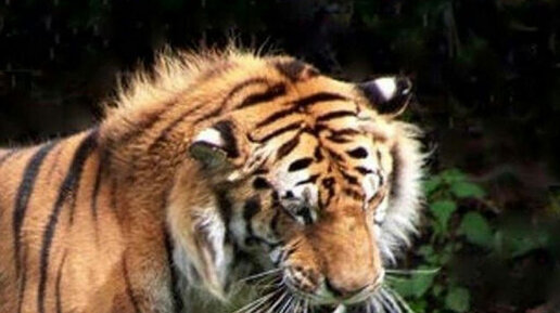 Тигрица предприимчивой схватила пакет с малышом и унесла в черную пещеру.
