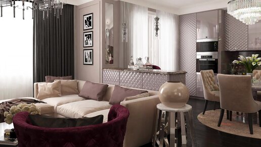 Блистательный и роскошный Арт-деко в интерьере кухни -гостиной сочетает в себе блеск, роскошь и невероятную красоту.
