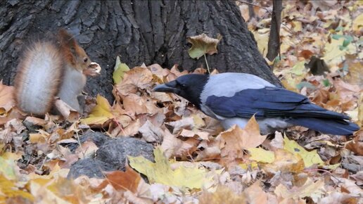 Ворона переживает, что орех едят без неё