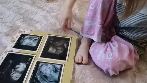 3г. Дочь рассматривает свой альбом первого года 😉