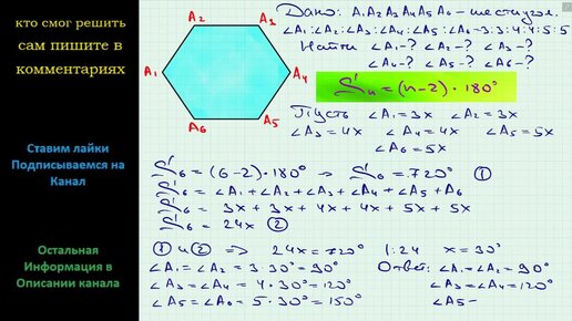 Геометрия Найдите углы выпуклого шестиугольника, если они относятся как 3:3:4:4:5:5