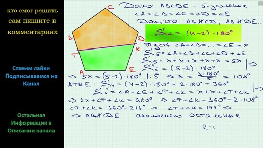 Геометрия Докажите, что если углы выпуклого пятиугольника равны, то он не имеет параллельных сторон