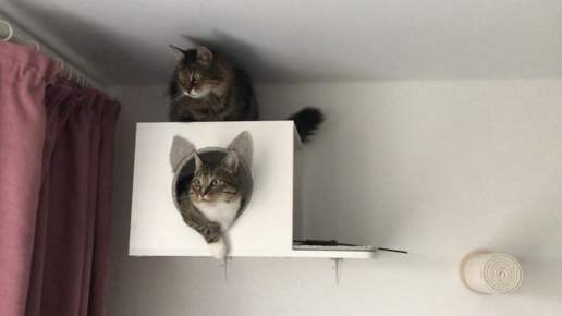 Марсик и Вася изучают игровую зону. Коты в восторге от домика