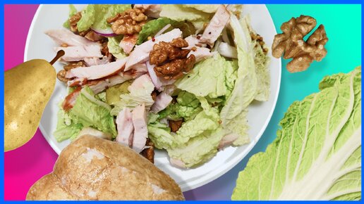 Гости сказали, что салат как в ресторане! Салат с копчёной куриной грудкой, грушей, грецкими орехами... ВКУСНО ОЧЕНЬ и ПОЛЕЗНО!