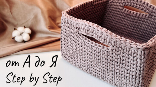 ❗️От А до Я!!! Идеальная квадратная корзинка из трикотажной пряжи. Вязание крючком для начинающих