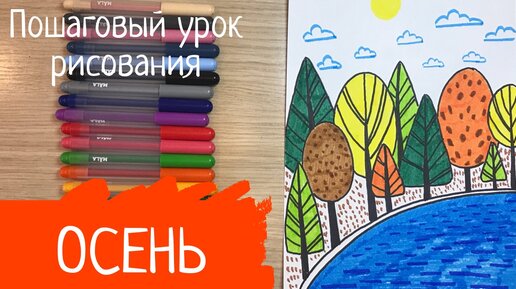 Рисунок осень. Рисунок на тему осень. Рисунок золотая осень легко. Осенние рисунки для детей