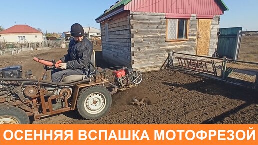 Осенняя вспашка самодельным минитрактором с навесным мотоблоком. Жизнь в деревне