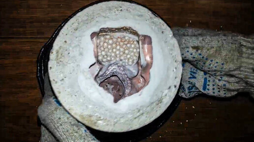 Выплавка воска из гипсовой формы в микроволновой печи с полной прокалкой в муфеле