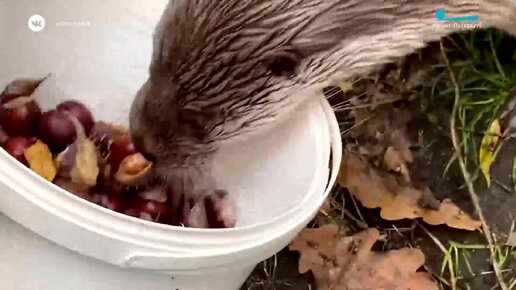 В Ленинградском зоопарке показали, как проводит осенние дни самец выдры Финик