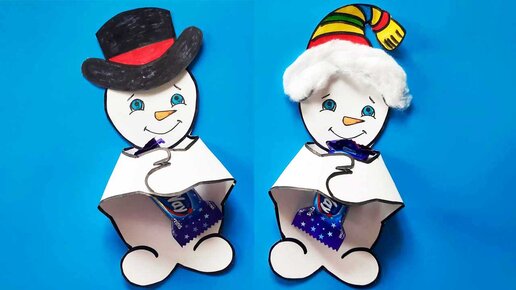 Cнеговики из бумаги. Поделка с подарком на Новый год