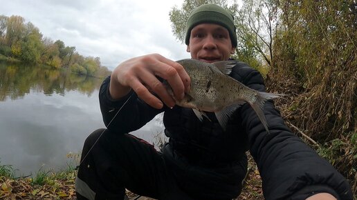 Рыбалка на поплавок по холодной воде. Всётаки заглянул Лещ на крючок у берега. .