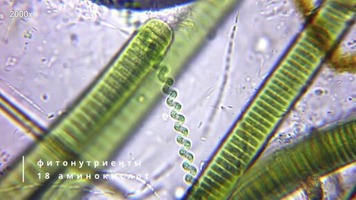 Водоросль СПИРУЛИНА под микроскопом - 2000х