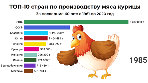 ТОП-10 стран по производству мяса курицы с 1961 года по наше время