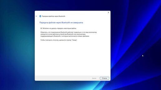 Передача файлов через Bluetooth не завершена Windows 11.Почему не отправляется файл через блютуз