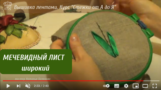 Листья. Мечевидный лист широкий. Вышивка лентами