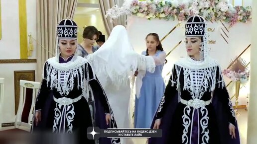 Красивый выход невесты и обряд снятия с неё платков.Первая встреча с родственниками жениха