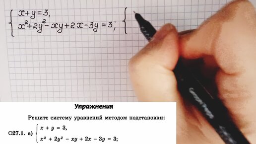 Рассматриваем решение системы из двух уравнений методом подстановки.