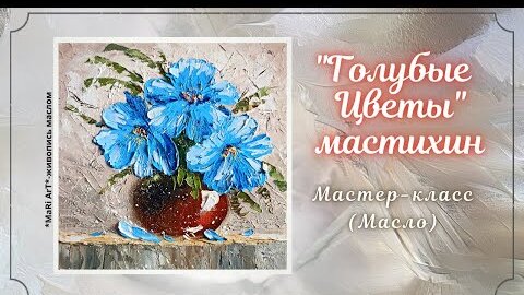 🎨_ГОЛУБЫЕ ЦВЕТЫ_ Мастихином_как нарисовать цветы маслом