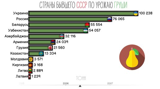 Список стран СССР по производству груши.Рейтинг стран СНГ.Инфографика.Статистика.Сравнение стран.Рейтинг стран по урожаю груши