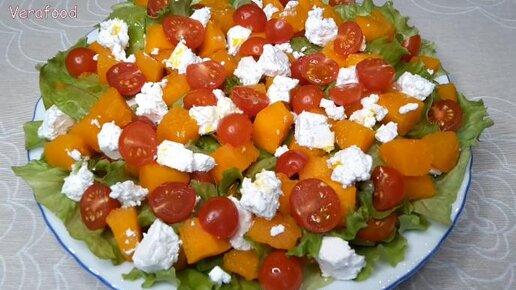 Салат из тыквы с листьями салата и сыром фета. Вкусный и очень красивый салат.