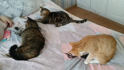 Безумные кошки его поймали. И положили на одеяло.