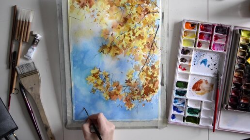 Этюд "Кружево осенних кленовых листьев на фоне голубого неба".