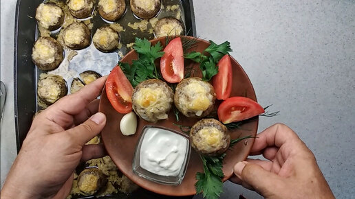 Делаем шампиньоны с фаршем и сыром в духовке