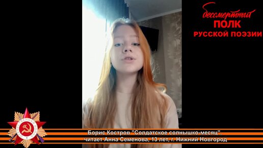 Борис Костров "Солдатское солнышко-месяц", читает Анна Семенова, 13 лет, г. Нижний Новгород