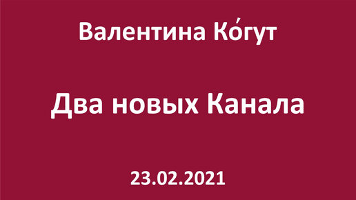 Два новых Канала Валентины Когут